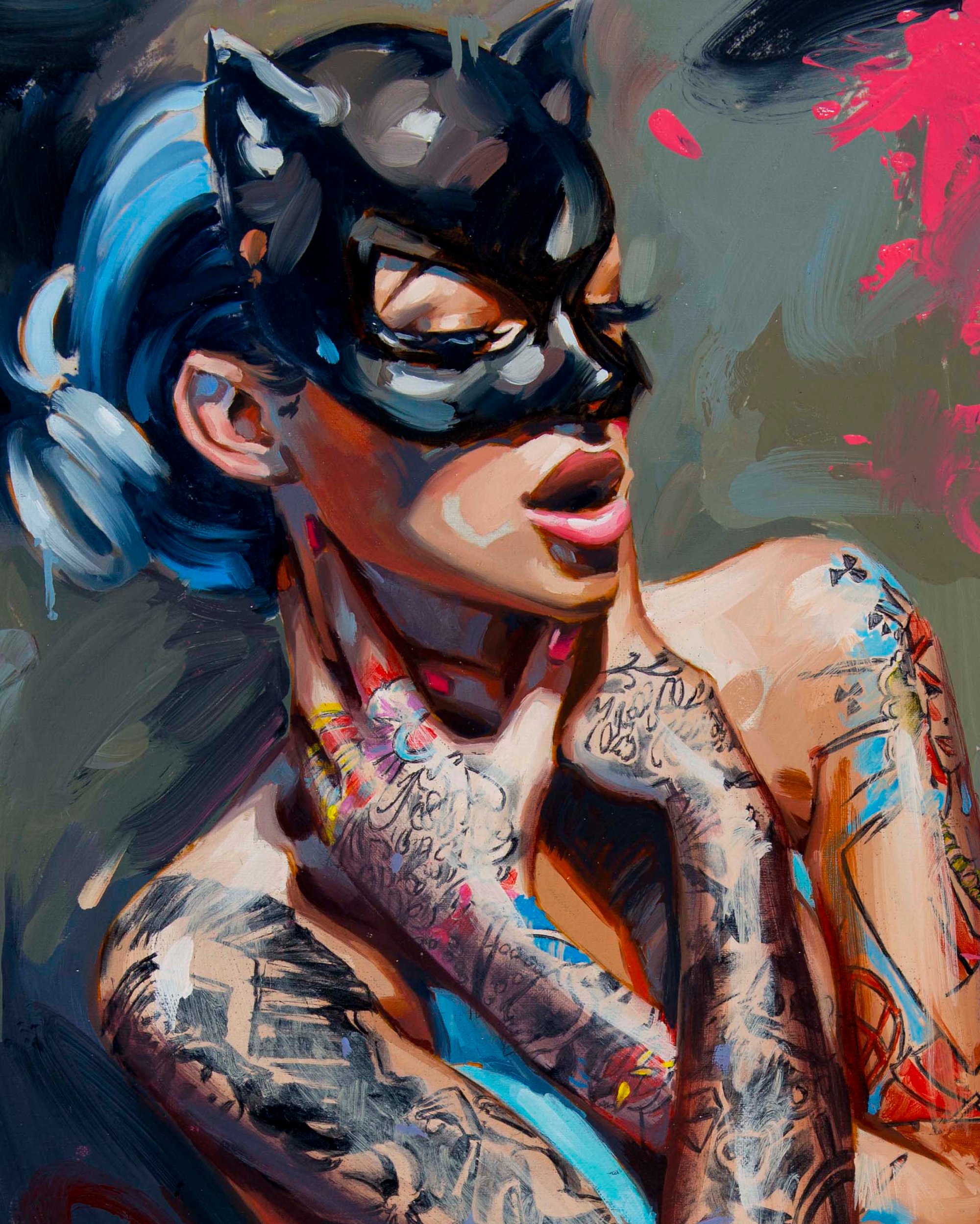 Every print is Hand embellished with Neon Pink and Blue Paint by Chris.